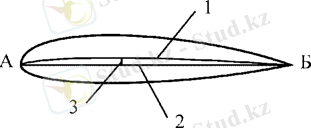 Рисунок 1. 7. Геометрические параметры профиля крыла: 1 - средняя линия; 2 - хорда; 3 - кривизна абсолютная