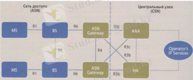 С точки зрения архитектуры обе технологии используют протокол IP, что значительно минимизирует капитальные затраты, позволяет гибко предоставлять сервисы, упрощает управление сетью, предоставляет простую интеграцию различных производителей. Также похожа и структура сетей (См. рис. 1. 1 и См. рис. 1. 2), в которых основные элементы имеют аналогичное функциональное назначение: Клиентское устройство (MS/UE) ; Базовая станция (BS/eNodeB) ; Шлюзы (ASN-GW/MME+Serving Gateway) ; Центральный узел (ААА, HA/HSS, PCRF) ; Транспортная сеть на базе протокола IP/MPLS.