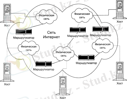 На рисунке 1. 6 использованы одинаковые обозначения для любых физических сетей, объединенных в сеть Интернет (например, соединений типа «точка-точка», локальных сетей рабочей группы или больших корпоративных сетей) .
