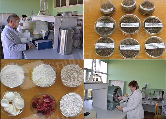Лаборатория занимается разработкой новых видов комбикормов лечебно-профилактического назначения для различных видов животных, рыб, птиц и созданием рациональной технологии эффективного использования сырьевых ресурсов при их производстве и глубокой переработкой зерна. Лабораторией руководит д. т. н. Алимкулов Жексенкул Сарманкулович.