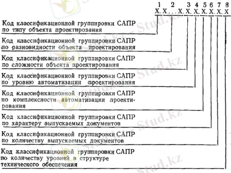 Коды классификационных группировок определяют принадлежность создаваемой системы к определенному подмножеству (классу) САПР.