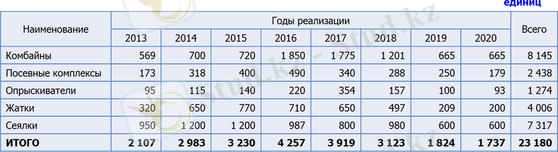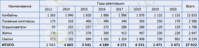 За период 2013-2020 годы планируется закупить в целом 23180 единиц сельхозтехники, применяемой при технологиях.