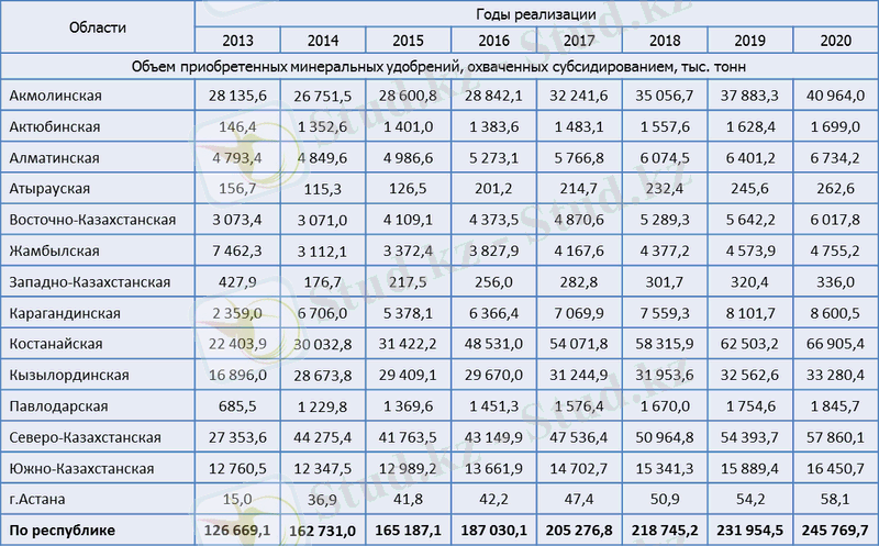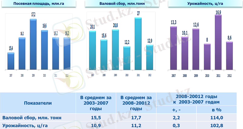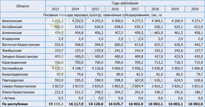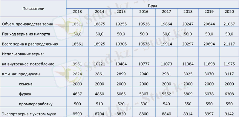 По данным Агентства Республики Казахстан по статистике за последние пять лет среднегодовой объем зерна, израсходованного на внутреннее потребление страны, составляет 8, 3 млн. тонн.
