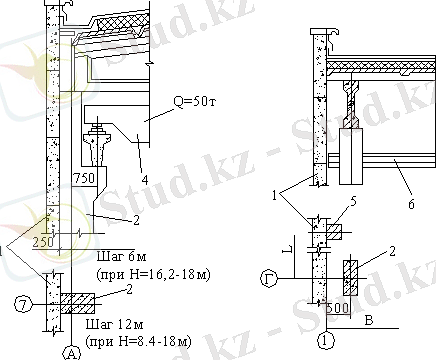 несущие элементы покрытий (балки) ; 5 - панели покрытии; 6 - консоли колонн для опирания подкрановых балок или подстропильных балок; 7 - подстропильные балки