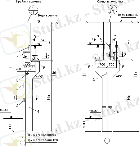 Колонны средних стен, имеющих фахверк смещают с поперечной разбивочной оси на 500мм, а в зданиях с сеткой колонн 6х6м имеют осевую привязку.