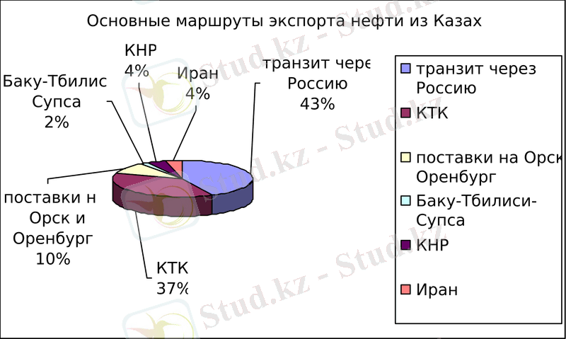 Рисунок 1 - Основные маршруты экспорта нефти из Казахстана (по материалам Минпромэнерго РФ (2004 г. ) )