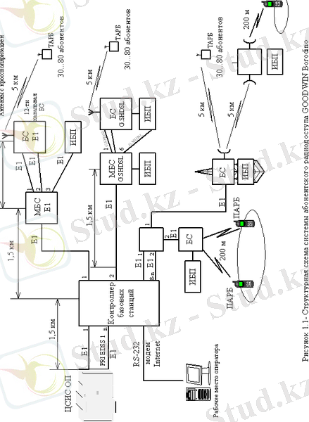 На рисунке 2. 1 представлена схема организации связи в системе GOODWIN Borodino с одним контроллером базовых станций.