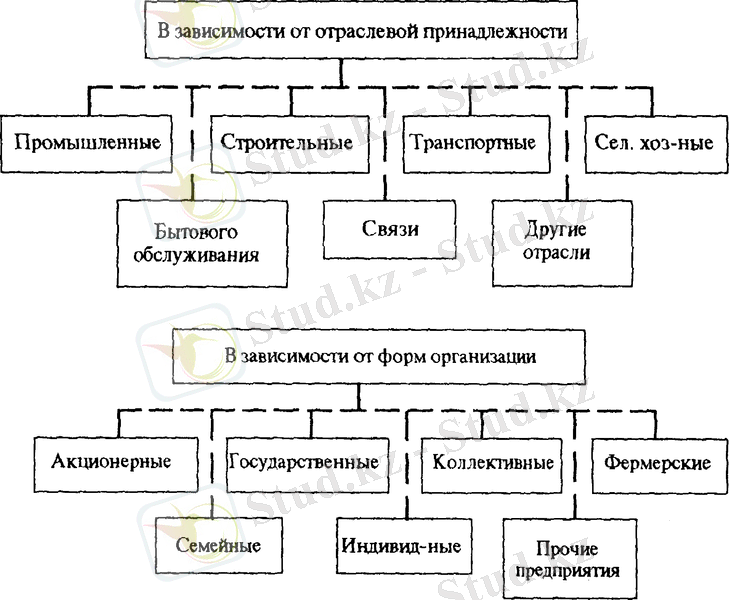1) по отраслевой принадлежности; 2) по виду и характеру хозяйственной деятельности; 3) по правовому положению; 4) по характеру собственности и по иным признакам.