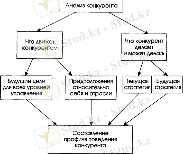 производители аналогичной продукции; поставщики; покупатели; потенциальные производителей аналогичной продукции; производители замещающих продуктов. Анализ конкурентов - достаточно сложный процесс, предполагающий углубленного изучения аспектов деятельности всех возможных конкурентов. Подход к анализу конкурента схематично представлен на рис. 1.