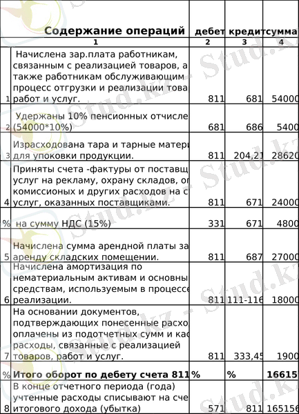 Корреспонденция по счету 811 «Расходы по реализации товаров (работ, услуг) ».