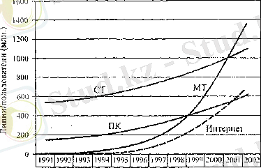 Рисунок 1. 1 - Показатели использования средств электросвязи, 1991-2002 гг.