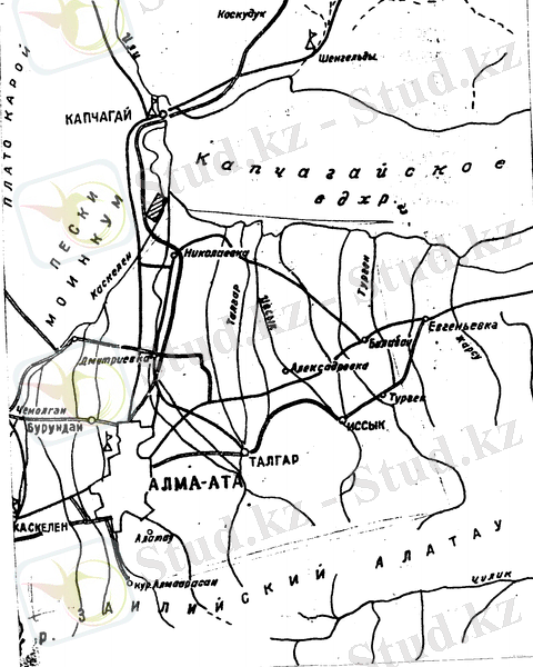 В 1944-46 г. г. на основе ранее накопившихся материалов Н. Н. Контенко составил сводную геологическую карту места К-43-Б с объяснительной запиской, явившуюся основной для дальнейшего изучения геологического строения Илийской впадины и прилегающих к ней районов. В 1945-46 г. г. В. И. Дмитревским проводились инженерно-геологические исследования на северных склонах Заилийского Алатау. В результате этих работ были составлены геолого-литологические карты и карта инженерно-геологического районирования территории г. Алматы в масштабе 1:25000.