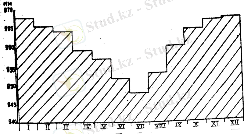 Рисунок 1. 5 - Среднемесячное давление воздуха, мм