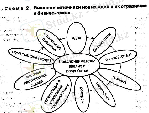 Рисунок 2 - Внешние источники новых идей и их отражение в бизнес- плане