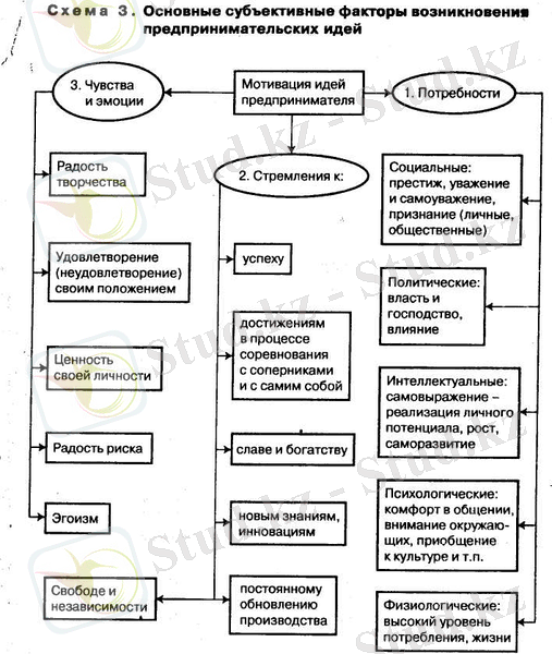 Мотивация, продуцирование, накопление и реализация идей проявляется в виде стремления предпринимателя удовлетворить свои потребности в процессе бизнеса и его результатами. Потребность как нужда или нехватка материальных и духовных благ для существования личности, лежит в основе поведения человека и возникновения у него различных идей. Сначала потребности переходят во влечение (поиск недостающих благ), затем - в стимул (образ необходимого блага) и мотивы, которые принимают форму установки и осознанных интересов. Последние формируются у предпринимателя с учетом различных явлений и ценностных ориентаций /1/.