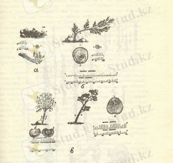 кривую затухающего колебания. Резкие изменения положения ствола в пространстве управляются отложением древесины, имеющей более тёмную окраску, большую плотность и осмоление. Это - креневая древесина, которая укрепляет ствол и изменяет его ориентацию в пространстве. [ 3 ] Появление креневой древесины чётко определяется по её цвету в хвойных породах макро- и мезоанализе поперечного среза ствола. При микроанализе выявляются свойственные древесине анатомические особенности (рис. №2) .