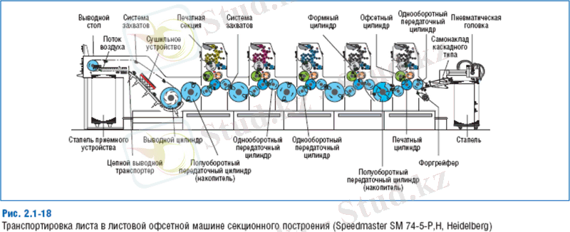 Специфической особенностью построения листовых печатных машин является наличие в них листопроводящих систем, организующих весь путь перемещения листа - от самонаклада до приемного стапеля.
