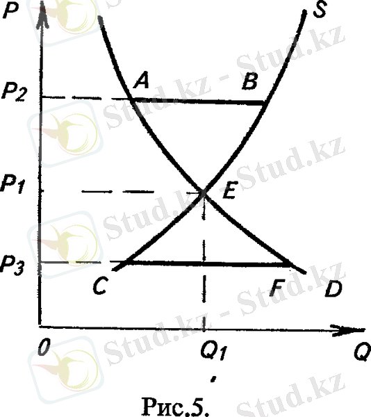 Здесь в точке Е будет равновесная цена, или как еще называют ее экономисты - цена рыночного клиринга. Причем равновесие здесь означает «покой» или «гармония». Важно подчеркнуть, что при цене равновесия устанавливается равенство не покупок и продаж - такое равенство существует при любой цене. При цене равновесия количество продукции, в пределах которой потребители намерены продолжать делать закупки, будет соответствовать тому количеству продукции, которое производители намерены продолжать поставлять на рынок. Только при такой цене будет отсутствовать тенденция к повышению или понижению цены.