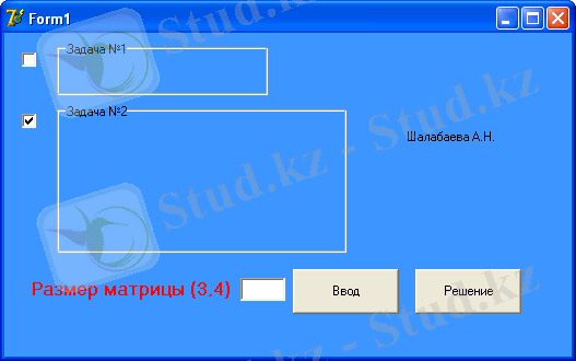 - Label2 - записывается текст «Размер матрицы (3, 4) »;