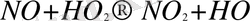 (окись азота + радикал пероксида водорода = двуокись азота + радикал гидроксила) ;