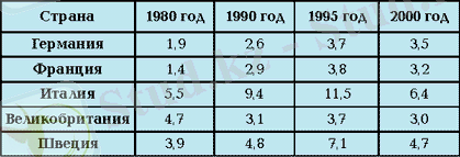 Реформирование бюджетных систем. По мнению многих исследователей, доля государственных расходов, достигшая в европейских странах 50% (Швеция даже превысила этот уровень), в то время как в США и Японии она составляет 30-36% ВВП, чрезмерно высока и должна быть снижена. Начались реформы, цель которых сократить государственные расходы и налоги, достигшие своего предела, - они лишь подавляют экономическую активность и загоняют людей в подпольную экономику.