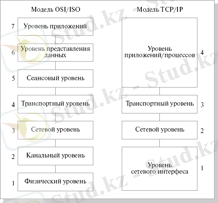 Рис. 1 Соотношение моделей OSI/ISO и TCP/IP