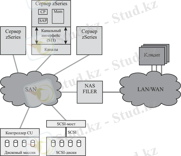 Рис. 3. Сетевые подключение памяти SAN, NAS