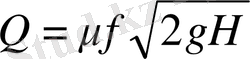 - экспериментальный коэффициент расхода отверстия, зависящий от рода жидкости, формы отверстия и перепада давления между сосудом и окружающей средой;