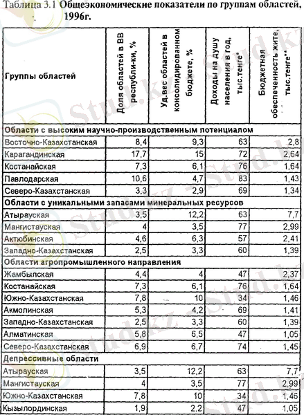 Жамбылская, Кызылординская, Атырауская области постоянно являются дотационными регионами, т. е. частично решают свои экономические проблемы за счет других областей. Поэтому преодоление дотационного характера территориальных бюджетов (областных, городских, районных) является ключевым вопросом построения нового бюджетного механизма.