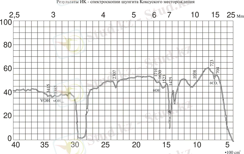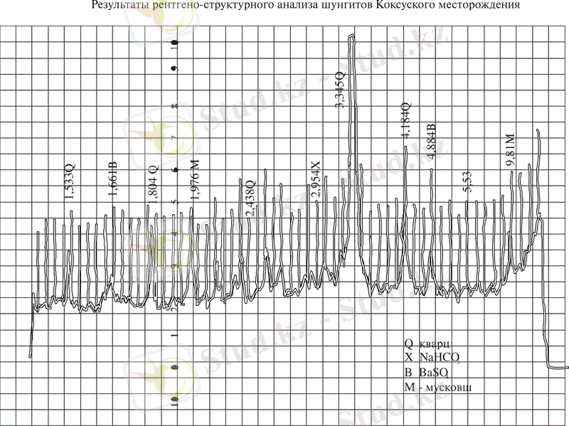 Нами были проведены рентгеноструктцрный аналих и анализ ИК - спектров шунгита Коксуского месторождения для установления состава последнего. Обе этих методики использовались в виду непсредственной необходимости, т. е. результаты последних дают возможность говорить о составе, в том числе и элементном, исследуемого вещества, кроме того, эти методики являлись доступными для проведения для авторов настоящей работы.
