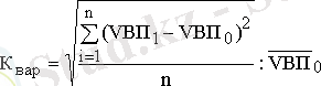 - коэффициент вариации (Квар) определяется как отношение среднеквадратичного отклонения от плановых заданий (за сутки, декаду, месяц и т. д. ) к среднесуточному (среднедекадному, среднемесячному и т. д) плановому выпуску (VBПо) :
