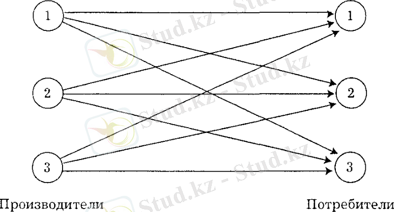 Рис. 2. Схема контактных линий "производители-потребители"