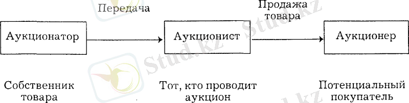 Аукционная форма торговли также относится к категории посреднических операций. В осуществлении таких операций участвуют три субъекта взаимоотношений (рис. 3) .