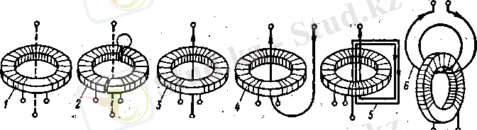 Многовитковые трансформаторы тока (рис. 1) изготовляются с катушечной первичной обмоткой надеваемой на магнитопровод; с петлевой первичной обмоткой 5, состоящей из нескольких витков; со звеньевой первичной обмоткой, выполненной таким образом, что внутренняя изоляция трансформатора тока конструктивно распределена между первичной и вторичной обмотками, а взаимное расположение обмоток напоминает звенья цепи; с рымовидной первичной обмоткой, выполненной таким образом, что внутренняя изоляция трансформатора тока нанесена в основном только на первичную обмотку, имеющую форму рыма.