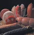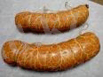 Для вязки колбас и вареных изделий из свинины и говядины в оболочках диаметром 100-120 мм используют шпагаты № 8 (0, 8/2) и № 10 (1, 0/2), где 0, 8 и 1, 0 - метрический номер, 2 - количество нитей или пряжи в шпагате. Для колбас с другим диаметром - №12 и 15, для вязки рулетов и подпетливания окороков, кореек и грудинок используют самый толстый шпагат № 3.