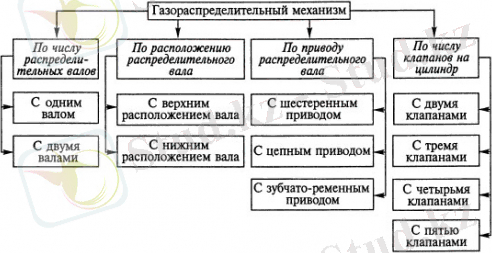 Рис. 1 Типы газораспределительных механизмов, классифицированных по различным признакам