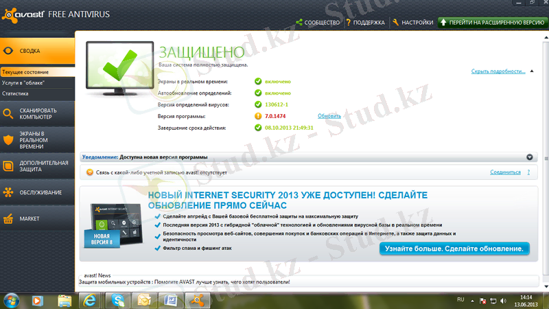 AVAST - антивирусная программа для операционных систем Windows, Linux, Mac OS, а также для КПК на платформе Palm, Android и Windows CE ( Рисунок 2) . Разработка компании AVAST Software, основанной в 1991 году в Чехии. Главный офис компании расположен в Праге. Для дома выпускается в виде нескольких версий: платной (Pro, Internet Security и Premier) и бесплатной (Free) для некоммерческого использования. Также существуют версии для среднего и большого бизнеса (Endpoint Protection, Endpoint Protection Plus, Endpoint Protection Suite и Endpoint Protection Suite Plus) и версии для серверов (File Server Security и Email Server Security) . Продукт сертифицирован ICSA Labs. Название avast является сокращением от anti-virus advanced set («продвинутый антивирусный набор») . То, что в английском языке есть слово avast («стоп»), было замечено позднее. AVAST Free считается самым популярным бесплатным антивирусом. Всего же антивирусом avast! пользуются более 177 миллионов пользователей во всём мире.