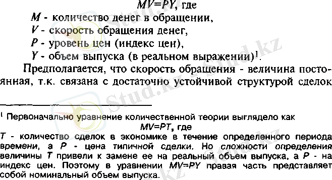 Количественная теория денег определяет спрос на деньги с помощью уравнения обмена: