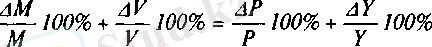 Уравнение обмена может быть представлено в темповой записи (для небольших изменений входящих в него величин) :