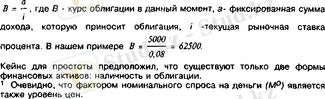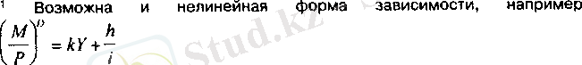 Приведенное выше уравнение количественной теории MV=PY называется уравнением Фишера. Используется и другая форма этого уравнения, так называемое кембриджское уравнение: M=kPY. Коэффициент k, однако, несет и собственную смысловую нагрузку, показывая долю номинальных денежных остатков (М) в доходе (PY) . Строго говоря, величины У и k связаны с движением ставки процента1, но в данном случае для простоты принимаются постоянными. Кембриджское уравнение предполагает наличие разных видов финансовых активов с разной доходностью (а не только наличность или Ml) и возможность выбора между ними при решении вопроса, в какой форме хранить доход.