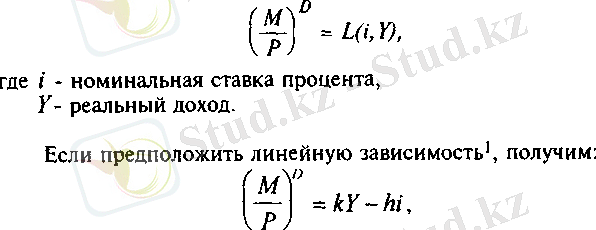 где коэффициенты k и h отражают чувствительнось спроса на деньги к доходу и ставке процента. Функция спроса на деньги показывает, что при любом данном уровне дохода величина спроса будет падать с ростом ставки процента и наоборот.