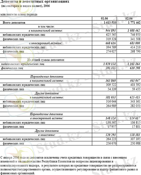 Конечно, политика в области развития депозитного рынка в Казахстане имеет свою специфику, что в первую очередь, связано с особенностями и масштабами экономических преобразований, которые происходят в Казахстане в настоящее время.