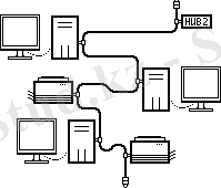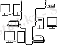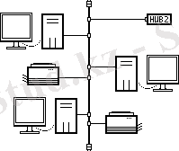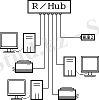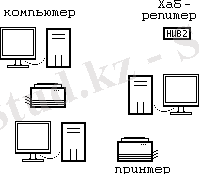 Каждый компьютер (и т. п. ) подключен отдельным проводом к отдельному порту устройства, называемого концентратором или повторителем (репитер) или хабом (Hub) .