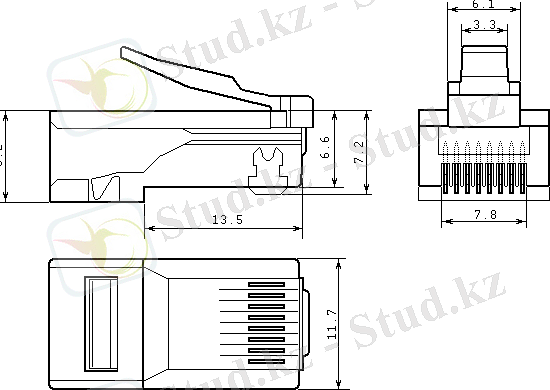 - Восьмиконтактный модульный соединитель (Вилка (Plug) )