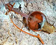 - домбра - наиболее широко распространенный в народе инструмент, изготовленный из цельного дерева, чаще всего двухструнный.