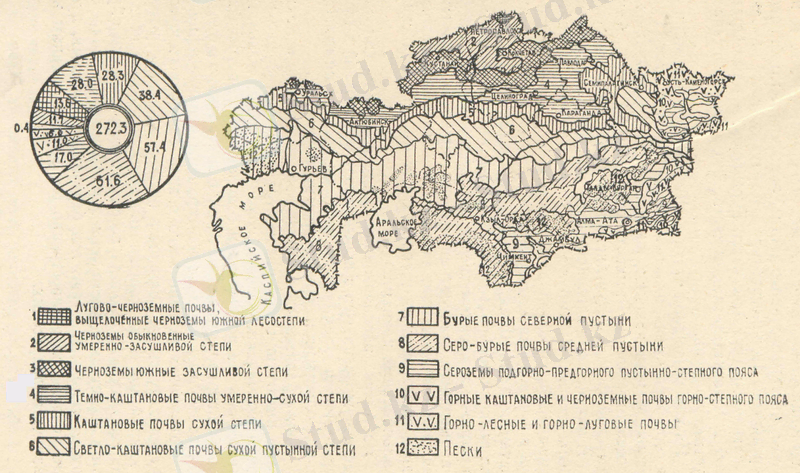 Казахстан занимает территорию около 272, 3 млн. га, протяженность республики с севера на юг около 1600 км, а с запада на восток около 3000 км. Естественно, что на такой обширной территории разнообразны природные условия, служащие факторами почвообразования: климат, устройство поверхности, почвообразующие породы и растительность [5] .