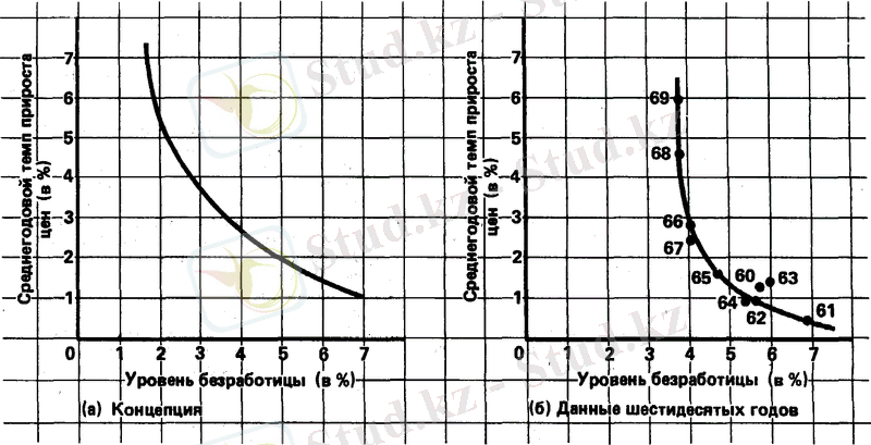 Рисунок 1. Кривая Филлипса. Концепция и фактические данные