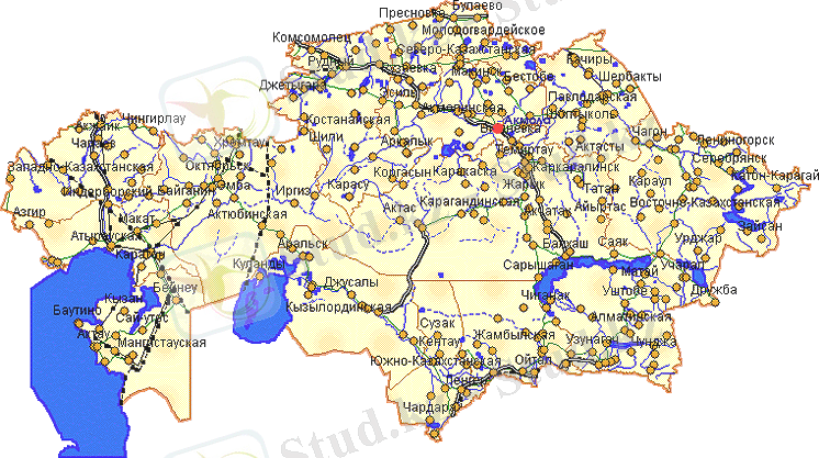 Казахстан расположен на стыке двух континентов - Европы и Азии, между 45 и 87 градусами восточной долготы, 40 и 55 градусами северной широты. Географический центр европейско-азиатского субконтинента находится именно в Казахстане (на пересечении 78 меридиана с 50 параллелью) - в эпицентре бывшего Семипалатинского атомного полигона. Казахстан занимает площадь, равную 2724, 9 тыс. кв. км. (1048, 3 тыс. кв. миль) и раскинулся к востоку от Каспийского моря и приволжских равнин до горного Алтая от предгорий Тянь-Шаня на юге и юго-востоке до Западно-Сибирской низменности на севере. Протяженность его территории с запада на восток превышает 3000 км (1150 миль), с юга на север - 1700 км (650 миль) . Казахстан по занимаемой площади находится на девятом месте в мире, т. е. входит в первую десятку крупнейших по территории государств мира - после России, Канады, Китая, США, Бразилии, Австралии, Индии и Аргентины. На просторах Казахстана одновременно вместились бы такие семь крупнейших государств Европы, как Франция, Испания, Швеция, Германия, Финляндия, Италия и Великобритания, или такие государства Азии, как Пакистан, Турция, Ирак, Япония и Вьетнам вместе взятые. Только это может свидетельствовать об огромных потенциальных возможностях данного региона земного шара.