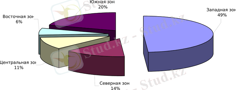 Западная зона обеспечивает около половины промышленной продукции республики (49%), Южная зона - чуть более 20%, Северная зона -в среднем 14%, Центральная зона - 11%, Восточная зона - около 6%.