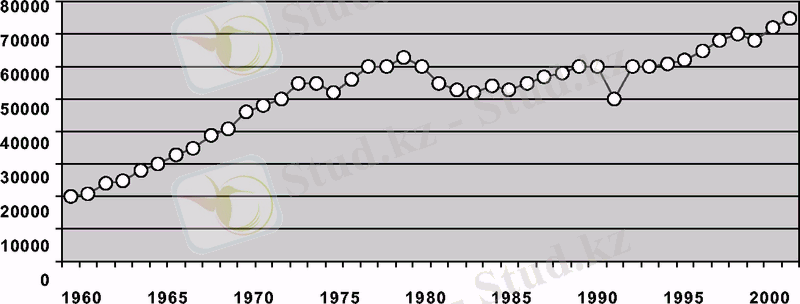 Рис. 3. Динамика мировой добычи нефти в 1960-2001 годах